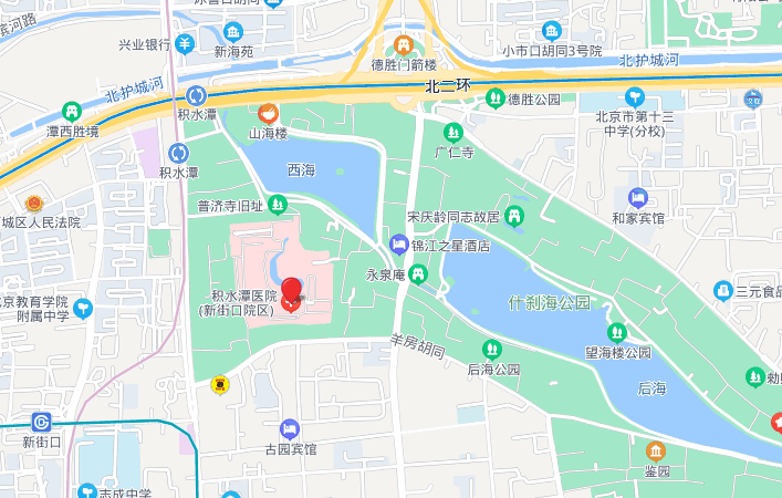 停车场:院内设有停车场、新华百货停车场(积水潭桥西南角)、积水潭桥下停车场及新街口东街两侧停车位