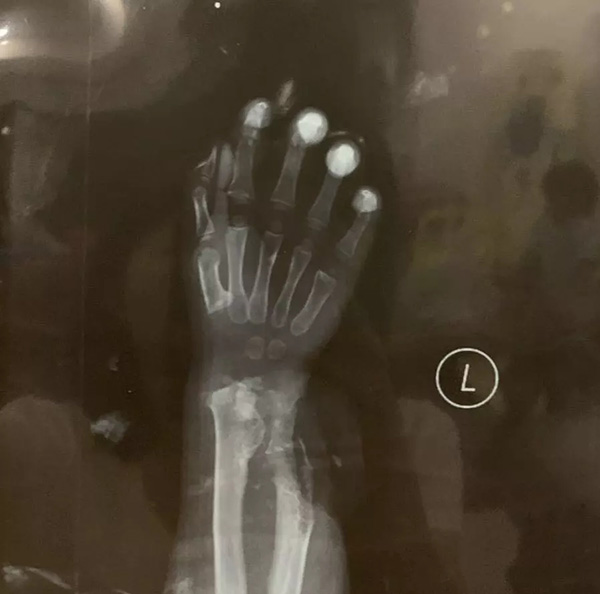 小希希出生后八个月的时候,父母细心地摸到她左手腕有块凸起,肉眼看不出,用力按也不疼,到广州的医院就医确诊为骨软骨瘤,因孩子太小建议每隔半年复查一次。直到2017年初夏,希希手腕的骨软骨瘤越长越大,已经影响到她左手的正常活动。希希父母心急如焚辗转在香港、广州医院求医,医生都建议手术。