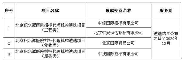 北京积水潭医院招标代理机构遴选项目遴选结果公告
