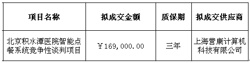 北京积水潭医院智能点餐系统竞争性谈判项目成交结果公告