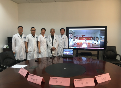 参加远程会诊开通仪式的有,北京积水潭医院医疗主管副院长贺良、医务部主任李笠、脊柱外科主任医师袁强、副主任医师肖斌、手外科副主任医师张春林;河北沧州市人民医院院长吕増禄,医疗主管副院长黄捷,医务部主任魏晓华、骨科主任冯青等。