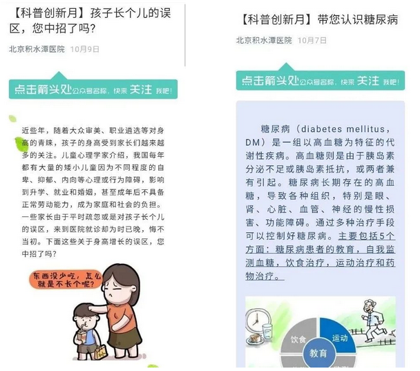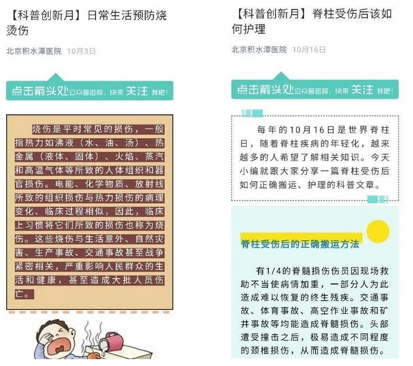2020年10月,北京积水潭医院党办、宣教中心、工会、团委联合举办了“潭论”科普创新月活动,本次活动旨在通过弘扬医院文化,进一步提高医务人员科普能力、发挥医院科普优势,服务全民健康需求,推动互联网时代的医学科普创新。