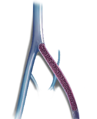 当然如果需要手术干预,也不用害怕,当今的手术方式已经实现微创化,近年来,大多数的患者我们都可以通过腔内介入治疗,例如球囊扩张术、或者髂静脉支架植入术(下图)等方式来解决这一困扰患者们很久的问题,从而促进患者溃疡的愈合,改善患者的生活质量。