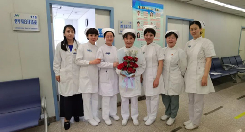 鲜艳的花朵,点亮了一张张美丽的笑脸,护士兄弟姐妹们非常感谢各位领导和同事们送来的节日祝福,纷纷合影留念。大家表示,今年护士节恰逢建党百年,建院65周年,我们一定会以更加优质的护理服务不断提升患者的就医获得感,为医院发展贡献力量。