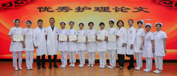 庆祝大会上表彰了2020年度护理工作中表现优异的护理人员,董秀丽副主任宣读了获奖名单,包括:“科研创新奖”、“优秀护理论文奖”、“文献汇报比赛”、“教学老师专科护士授课比赛”、“皮肤病例大赛”以及“健康科普微视频比赛”等,院领导与获奖者合影留念。