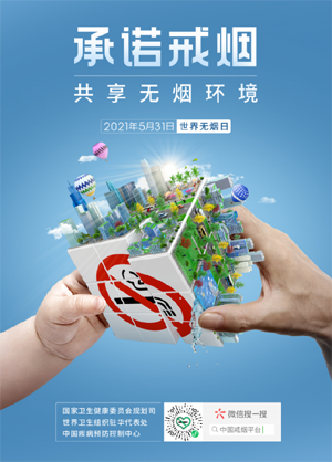 2021年5月31日是第34个世界无烟日,今年世界无烟日主题是“承诺戒烟”。世界卫生组织规定,每年的5月31日为“世界无烟日”,规定这一天世界各地既不吸烟也不售烟,并要求各国广泛宣传戒烟的意义。结合今年世界无烟日总务处制定禁烟倡议书,希望全体职工积极响应,带头承诺戒烟,共享无烟环境。