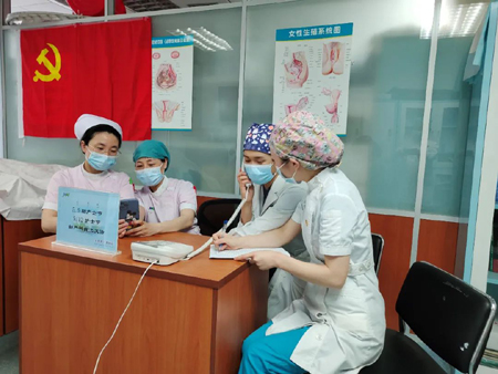 “杨帆关爱分娩护理工作室”团队特邀妇产科吕青青医生来到咨询现场,为孕产妇提供专业的电话指导,并通过视频查看新生儿的脐带及黄疸情况。咨询现场热线电话不断,咨询的问题涉及到建档产检、孕期体重管理、分娩镇痛、导乐分娩、母乳喂养、新生儿护理以及出生证的办理等众多方面。