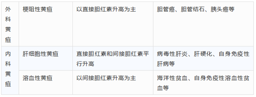 根据发病机制不同,可以将真性黄疸分为梗阻性黄疸、肝细胞性黄疸和溶血性黄疸。病例一和病例二的患者都属于梗阻性黄疸,都需要通过外科手术解除梗阻进行治疗,因而临床上又将梗阻性黄疸称为外科黄疸。而病例三属于肝细胞性黄疸,外科手术没有用武之地,需要通过药物治疗。溶血性黄疸同样也是需要药物治疗。因此,肝细胞性黄疸和溶血性黄疸又被称为内科黄疸。