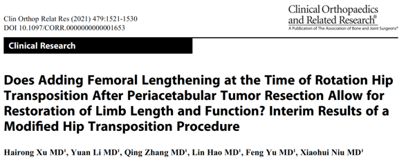 近日,北京积水潭医院牛晓辉教授团队的原创性科研成果在国际骨科学知名期刊Clinical Orthopaedics and Related Research (外科和骨科类Q1,IF=4.176 )发表,该成果“旋转上移异体骨移植”为北京积水潭医院原创的骨盆肿瘤重建新术式,填补了国内外长期以来骨盆肿瘤切除后缺损缺乏生物重建的空白。该研究通过长期随访数据表明:“旋转上移异体骨移植”手术方式具有生物重建、功能理想及并发症低的显著优点,为骨盆肿瘤患者,特别是预期生存期长的患者提供了一种新的治疗选择。