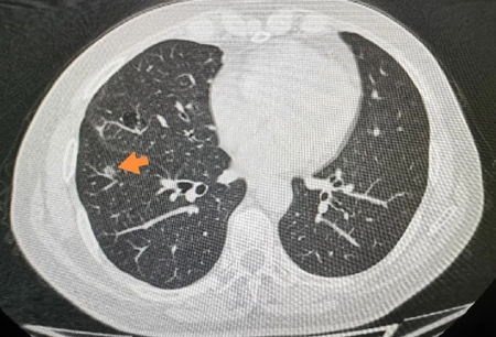 近日,北京积水潭医院胸外科收治一位女性患者, 6月前查体发现肺部结节,位于右肺下叶背段,为3mm磨玻璃结节(GGO),结节无明显实性成分,当时未做治疗,密切随访6月后复查胸部CT,结节进展为5mm结节,GGO伴部分实性成分。