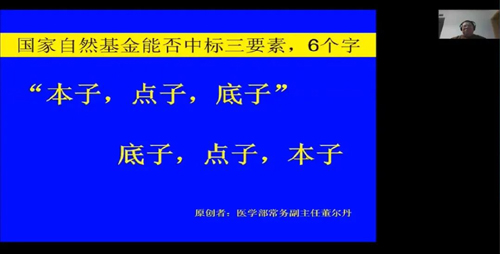 安教授结合自身丰富的国自然申报和评审经验,针对标书撰写中的关键问题进行了深入浅出的讲解。从“点子”、“底子”、“本子”的角度,深刻总结了国自然基金标书的撰写规范和技巧,并针对研究内容、研究目标及拟解决的关键科学问题,整体研究方案和可行性分析,研究队伍现状、前期工作基础和研究条件等方面进行了详细地讲解,通过真实案例指导大家如何写好一个打动评委、逻辑清晰的标书。