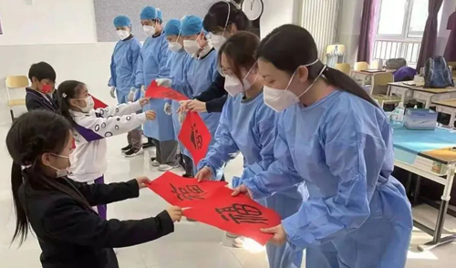 近期,我院小儿内科在确保日常诊疗工作的同时,多次完成新冠疫苗接种工作。为表达对医务人员的敬意,12月20日,清华大学附属中学昌平学校悦府校区的老师们带领学生一起制作了福虎书法作品,献给辛苦劳碌的医护人员,寒冬之中的一抹红色祝福温暖了所有人的心。