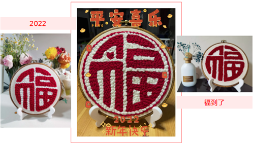 戳戳绣又叫墩绣,看上去厚重、饱满,摸上去手感很松,正反面都有完整的图案,和中国四大名绣相比,它的立体感特别强,属于北方的一个特色绣种。戳戳绣通过不同的创意、配色,简单的操作手法也能千变万化出各种类型的物件。职工们在活动中,感受着古老的民间艺术散发出的迷人魅力,感受着冬日里那份浓浓的年味,大家用亲手绣成的一个个“福”字表达着对新年、对医院最美好的祝愿。