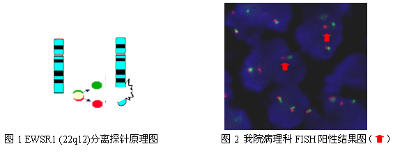 我院病理科FISH检查目前开展了应用于Ewing肉瘤诊断的EWSR1的分离探针检查以及应用于滑膜肉瘤诊断的SS18的分离探针检查,目前已完成检测近20例,检测结果满意。今后还将陆续开展可应用于包括粘液样脂肪肉瘤、骨外粘液样软骨肉瘤、促结缔组织增生性小圆细胞肿瘤、腺泡状横纹肌肉瘤等多种疑难骨与软组织肿瘤的基因检测项目。