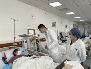 2月1日虎年第一天,不到7点透析室的医护就开始为“肾友”的治疗忙碌上了,开机器、配液、自检、冲洗管路……张东亮主任医师和值班同志一起对两院区病房留驻患者和常规血液透析患者进行查房,叮嘱广大肾友节日期间注意饮食、监测血压、控制血糖、防控疫情等,并给大家拜年。