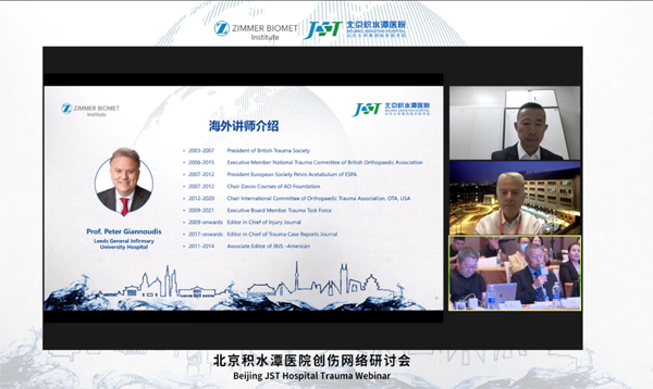 近日,积水潭创伤网络研讨会成功在北京线下会场和线上融合的方式进行举办。本次会议由北京积水潭医院院长蒋协远教授担任课程主席,王满宜教授担任课程学术总顾问,高志强教授,查晔军教授、黄强教授共同授课,会议连线了英国利兹大学综合医院的Peter Giannoudis教授并进行了中英双语同传直播。