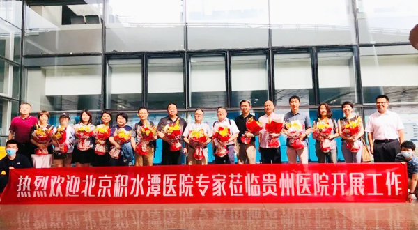 为贯彻落实党中央、国务院决策部署,深入实施健康中国战略,推进卫生健康领域供给侧结构性改革,着力解决群众看病难问题,实现北京积水潭医院贵州医院规范、高效发展,2022年8月14日,北京积水潭医院派出的14位专家抵达贵州。北京积水潭医院贵州医院党委书记邱冰、院长冯超、副院长刘亚波、党委副书记张卿、副院长郝川、副院长罗春山、纪委书记廖永芳以及相关科室负责人到机场迎接。