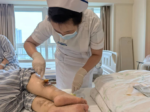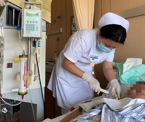 麻醉科副主任孙可在患者意识障碍配合不利的情况下,协助风湿免疫科医生完成腰穿鞘内注射治疗。肾内科副主任张东亮带领血液净化团队给予极大配合,首次在新龙泽院区普通病房完成危重症患者床旁血浆置换。输血科主任葛艳玲也给予了大力支持,联系血站配足上万毫升的血浆,支持临床抢救治疗使用。李云龙护士长带领病区护理团队加班加点,昼夜精心守护患者,保质保量地完成了血浆置换治疗。王艺护士长特意赶到新龙泽院区协助指导患者复杂伤口换药。
