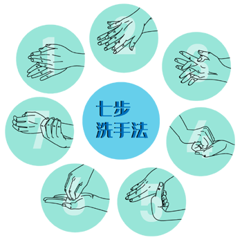 ① 任何时间都要坚持手卫生!学会并严格执行“七步洗手法”。