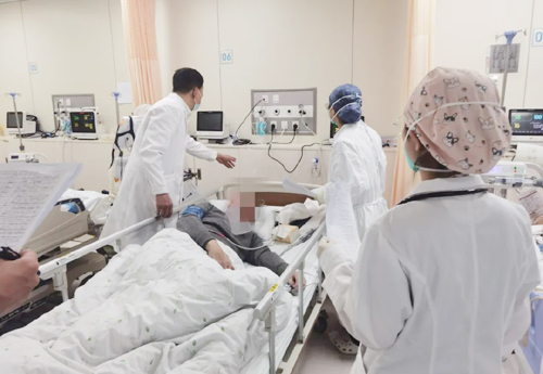 “主任,9床的患者呼吸一直不好。”当天,抢救室里共有16名患者,9床住着一名超过70岁的老年患者,因上消化道大出血送医抢救。“患者食道胃底静脉曲张破裂出血,有没有使用奥曲肽?是否50微克每小时?”抢救室里的每名患者,田兆兴都要挨个查看,对于生命体征不平稳的患者,他则会格外关注,根据病情变化及时调整治疗手段。