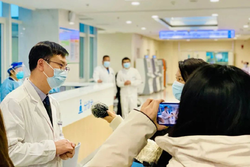 ▲2021年12月29日,北京积水潭医院新龙泽院区急诊试运行,鱼锋正在接受媒体采访。