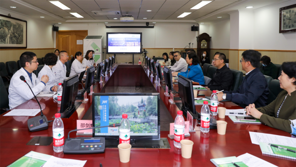 蒋协远院长对课题组专家的到来表示热烈欢迎,简要介绍了医院发展历程,听取了闫傲霜主委关于“充分发挥北京科学研究与临床医学优势大力推动医药健康产业高质量发展”课题背景介绍。