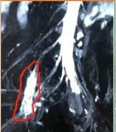 图4 红圈内为骶丛神经肿瘤