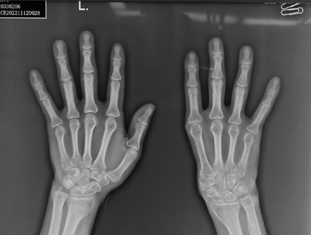 陈山林团队接诊后,经过检查,发现张先生拇指完全缺损,大鱼际部分完全缺损,自大多角骨以远骨关节完全缺损,在分型上属于六度缺损,几乎是最重度的分型了。张先生坚决拒绝从髂骨取骨等其它传统方案,要求利用3D打印技术为他打印掌骨和关节。结合患者要求,经治疗组讨论,陈山林团队决定利用3D打印技术自体结合组织游离移植技术再造第一掌骨系列。