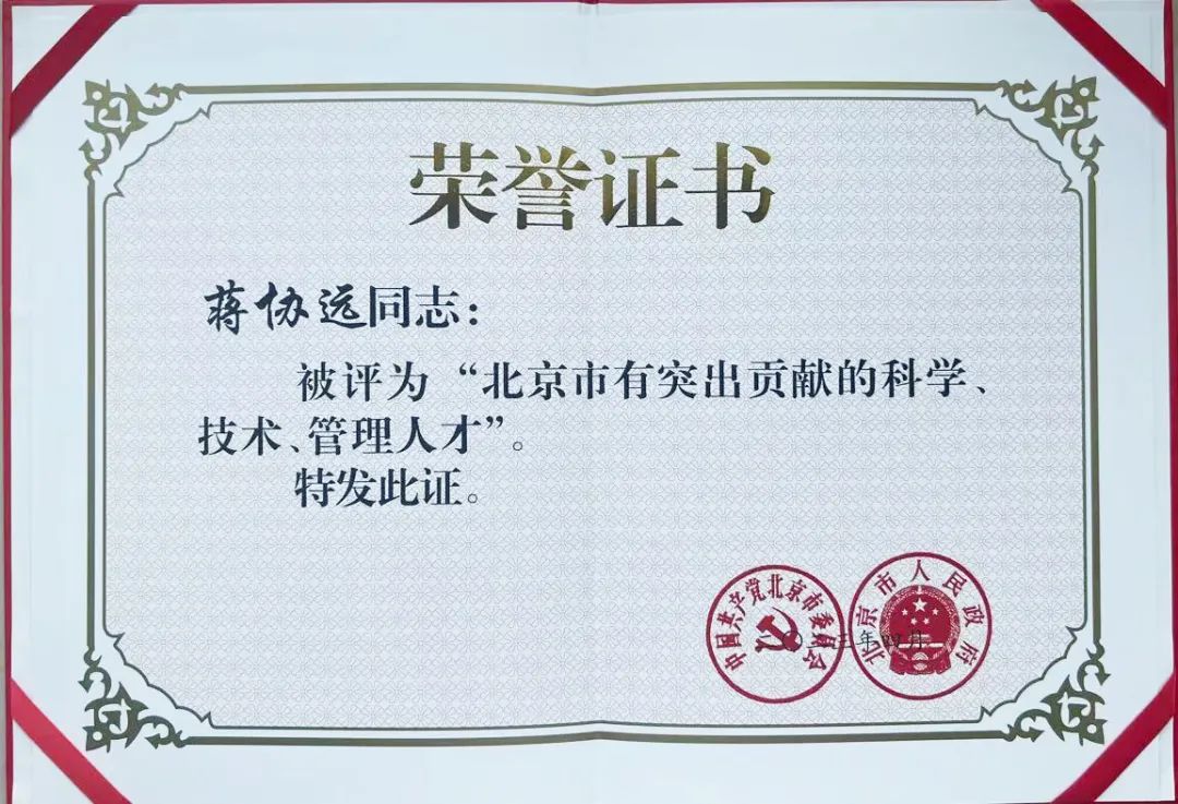 北京积水潭医院院长蒋协远教授荣获 “北京市有突出贡献人才”