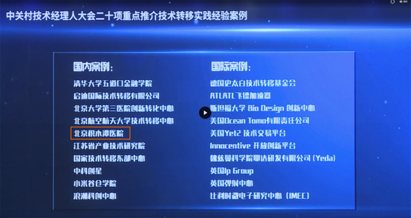 大会发布了《中关村论坛技术经理人大会二十项重点推介技术转移实践经验案例》,北京积水潭医院作为典型案例入选。