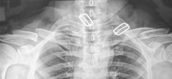 ▲双侧锁骨骨折,移位明显