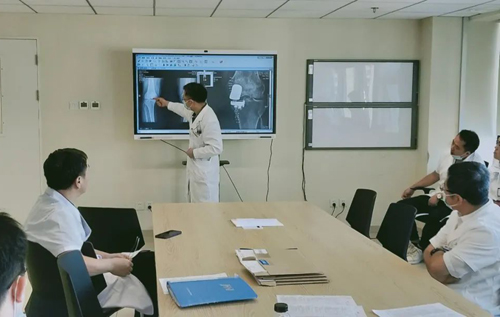 在矫形骨科,主任周一新首先介绍了科室的发展现状,阐述了复杂髋臼重建的“圈-点-柱”理论,并提出关节外科医生需要具备的知识、技能、判断力。我的带教老师是郭盛杰、唐杞衡、顾建明,老师们年轻有为,知识储备渊博,医术高超精湛,手术操作娴熟,关心关爱患者,常常到患者床边指导康复锻炼。郭盛杰老师的无菌操作理念、rKA理念、TKA及THA的精准手术操作,顾建明老师对下肢畸形的精准矫正(HTO、DFO)、单髁或双间室关节置换让我印象深刻。此外,我还跟随黄野老师、柳剑老师的保膝团队多次参加培训班,进一步提升了对保膝的认识及单髁置换的手术操作技术。