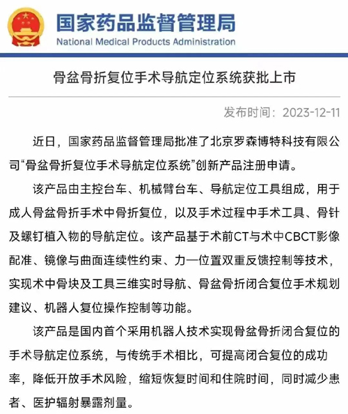2023年12月,骨盆骨折复位手术导航定位系统获批上市。
