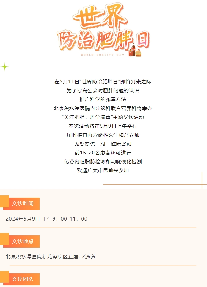 义诊预告丨北京积水潭医院内分泌科联合营养科将举办“关注肥胖,科学减重”主题义诊活动