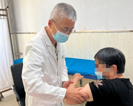手外科党支部医护小组由委员胡琪主任医师,党员李文军主任医师、易传军主任医师、曹建华护士长以及积极分子王青玉护士长5人组成。由于就诊人数较多,为了减少患者的等待时间,3名专家在诊室同时展开医疗服务工作。胡琪和易传军仔细为每一位患者问诊、查体。曹建华、王青玉认真做好分诊工作,引导患者排队。现场秩序井然,有条不紊。此次活动共为40余位手部疾病患者提供诊疗活动,把优质医疗服务送到了村民的家门口。