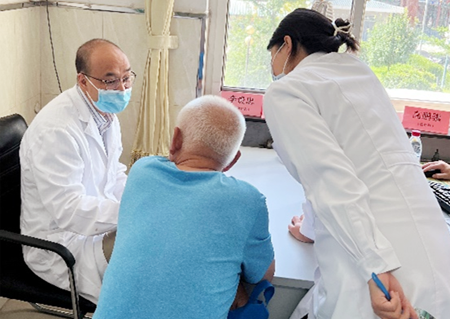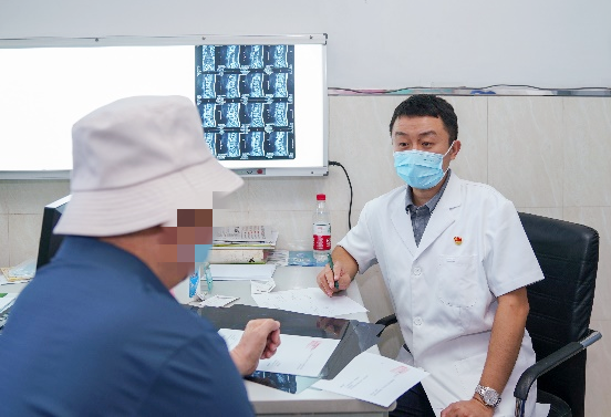 泌尿外科党支部书记李贵忠主任医师及王杰医师组成本次义诊医疗小组。泌尿外科疾病很多涉及患者隐私,不少患者初诊很难主动、全面的表述完整病情。对此,李贵忠主任利用多年的临床经验,在问诊中注重沟通技巧,以温和幽默的态度,用通俗易懂的语言向患者介绍疾病的病因、病生理表现、治疗方法及预后转归。患者在了解疾病的原理,树立对治疗的信心后,能够完整地表达自己的病情和诉求,医患配合度越来越高。王杰医师作为泌尿外科年轻医师,对待患者非常耐心细致。为避免患者错过每一个治疗要点细节,患者后续诊疗的每个环节流程和时间节点王杰都会反复交代,赢得了就诊患者的一致好评。