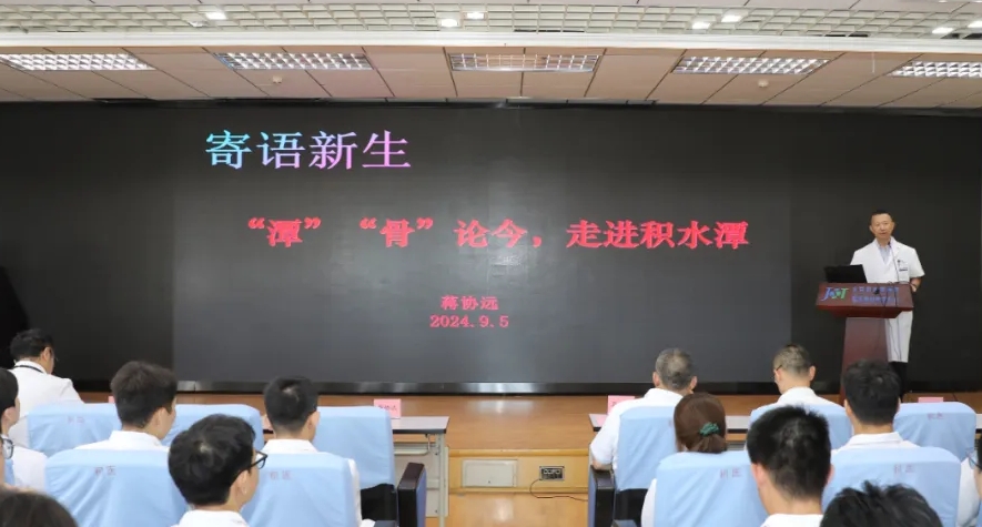 典礼结束后,蒋协远以《 “潭”“骨”论今,走进积水潭》为主题,向全体新生讲授开学第一课,重温积医经典并提出寄语和希望: