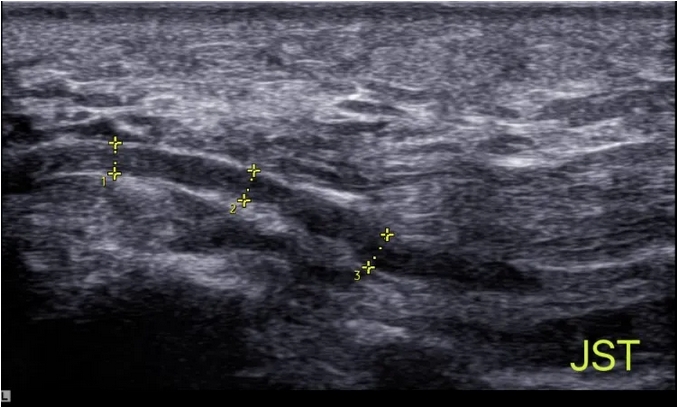 肌骨超声还可以用于评估神经病变,如神经卡压综合征、神经瘤等。它能够显示神经的形态和周围结构的关系,为神经病变的诊断和治疗提供重要信息。