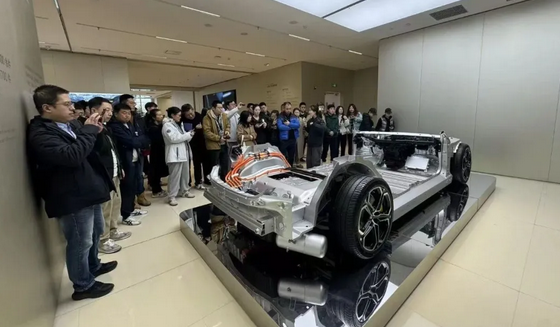 活动伊始,职工们首先来到小米汽车展厅。在专业讲解员的细致介绍下,大家深入了解了小米跨界造车的背景,以及小米电动汽车的研发历程、设计理念、技术创新和安全标准。当听到小米在电池技术和电机研发方面取得的突出成就,以及凭借这些优势在新能源汽车领域占据领先地位时,现场职工纷纷由衷赞叹,并不时拿出手机记录关键信息,相互交流体会。