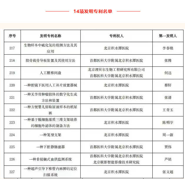积医荣誉丨北京积水潭医院14项发明专利获市总工会创新助推