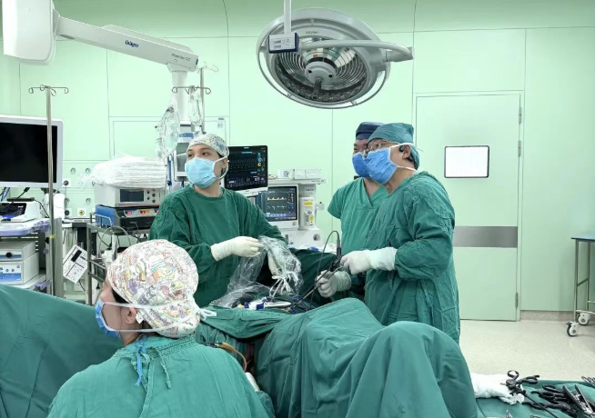 腹膜后肿瘤切除手术本就风险重重,术中稍有不慎就可能引发大出血、损伤重要脏器,再加上张女士的肿瘤体积达6厘米、位置深嵌,如何在彻底切除肿瘤的同时,最大限度降低患者创伤,成为摆在团队面前的难题。常规腹腔镜虽能缩小腹部切口,却面临“大体积标本取出难”的困境,若强行扩大腹部切口,就失去了微创手术的意义。但传统开腹手术虽稳妥,却违背了患者对微创、美观、快速康复的诉求。为了兼顾治疗效果与患者术后生活质量,王永军主任团队术前反复开展病例研讨、手术推演,结合女性生理特点与肿瘤位置特征,最终敲定一套大胆创新的个体化方案:经腹腹腔镜精细切除肿瘤,之后再经阴道后穹窿自然腔道将标本取出,用最小创伤实现最优治疗效果。